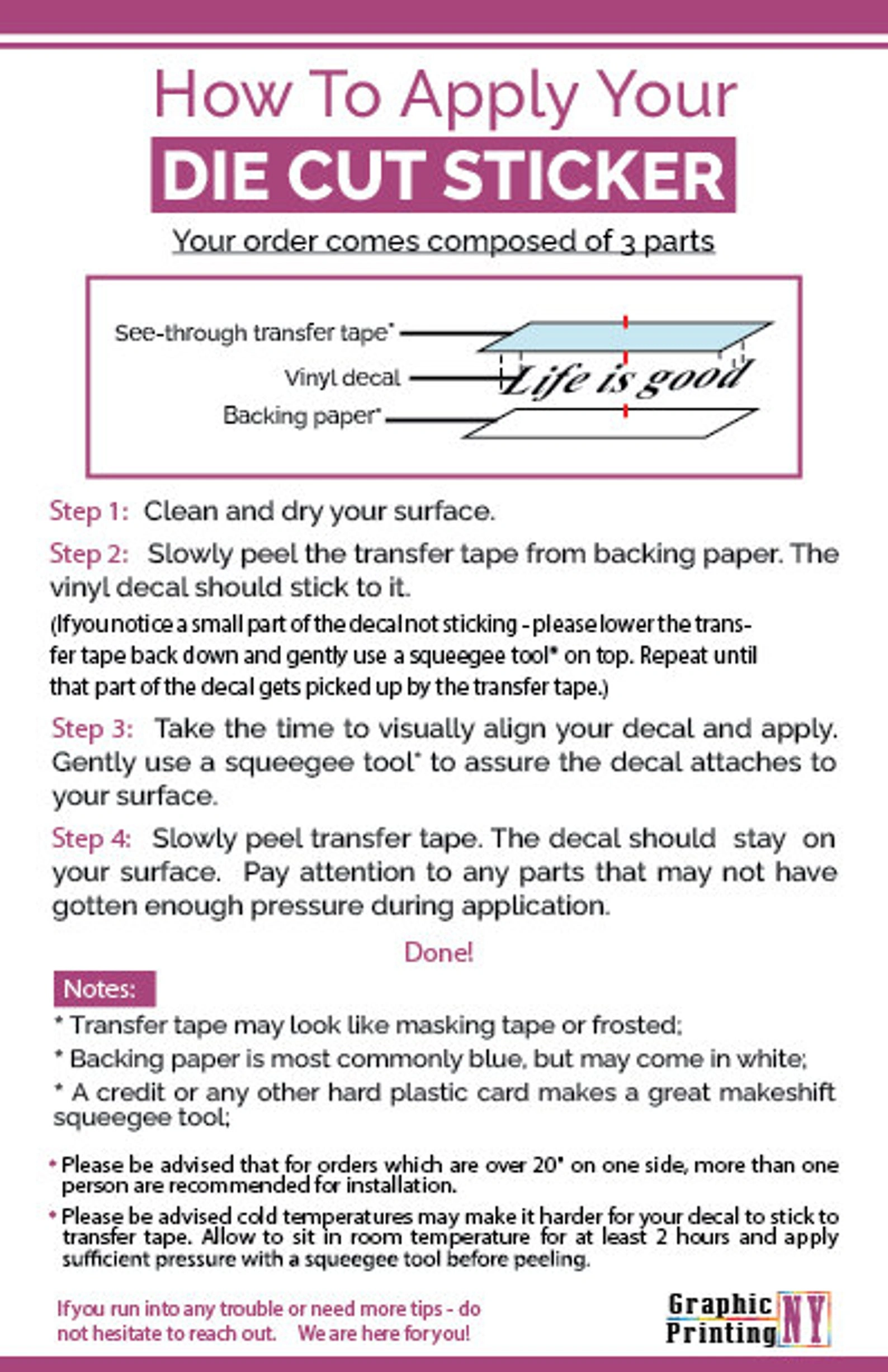 This listing is for one custom decal cut in one solid color, according to our color chart. These types of vinyl are good for outdoor and indoor applications on walls windows, car windows, vehicles, glass, smooth wood, or other smooth flat surfaces. It is removable, not reusable. It does not leave residue or damage when removed.