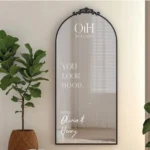 Create a polished, professional look with custom vinyl lettering that can be applied directly to mirrors for weddings, events, bathrooms, guest rooms, vanity setups + more.